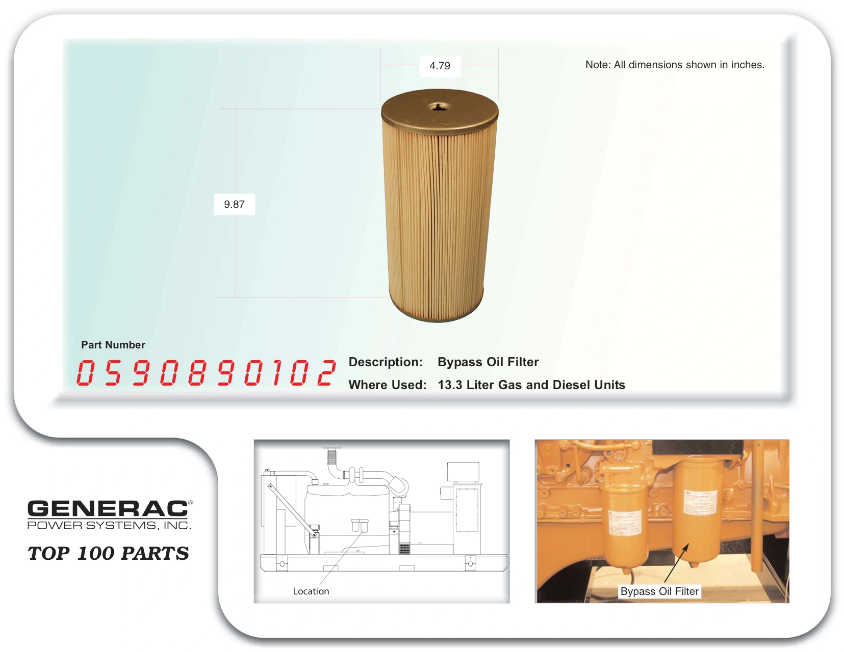 BYPASS OIL FILT EL GEN-0590890102 Manufacturer: Generac Power Systems – OPE