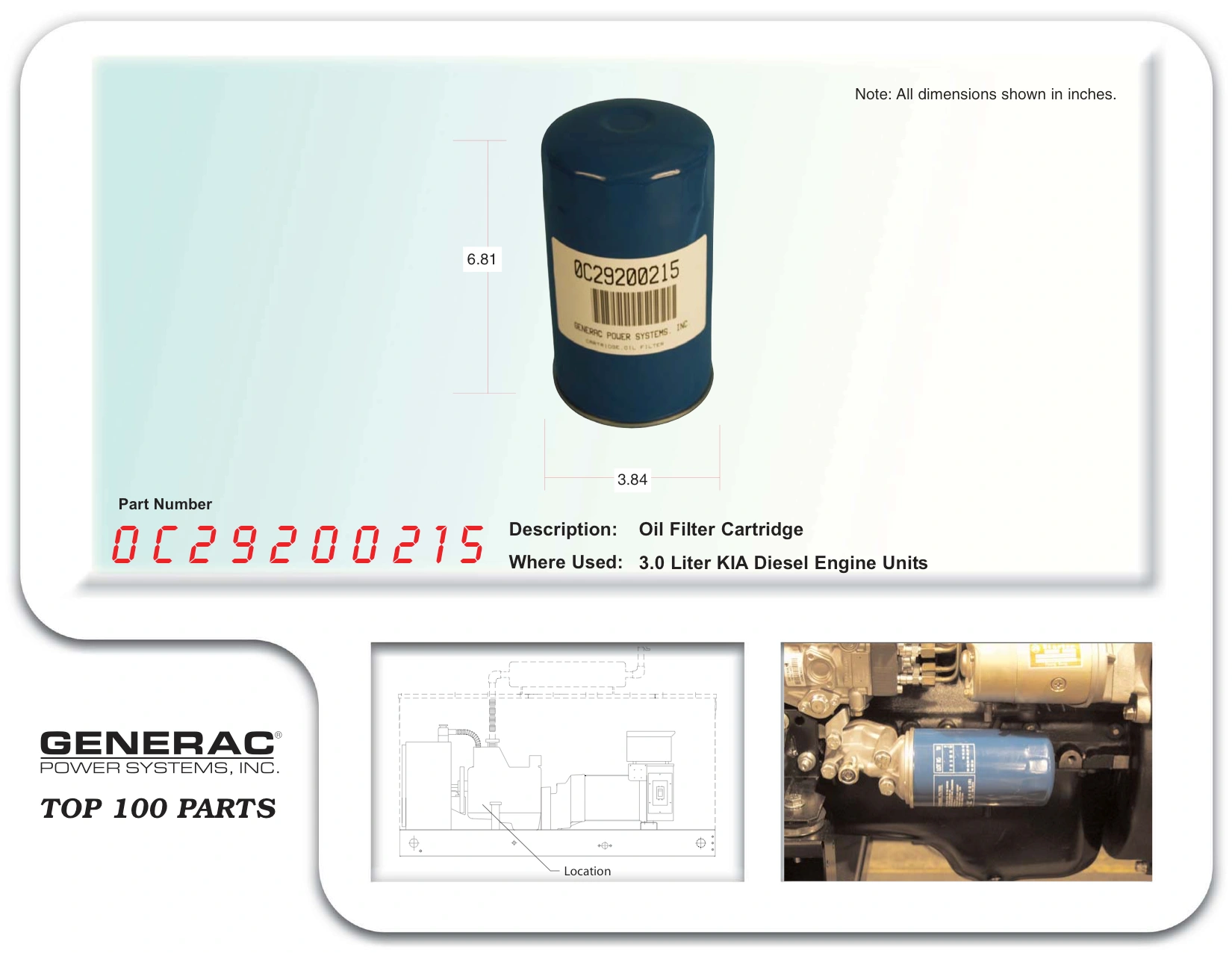 OIL FILTER CARTRIDGE GEN-0C29200215 Manufacturer: Generac Power Systems – OPE